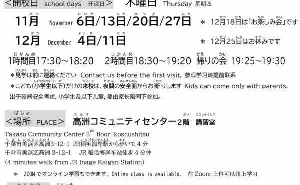 2025年6月11日日々の活動(ひびのかつどう)スタッフO 第7回(だいななかい)総会(そうかい)終(お)わりました5月29日(木)ごがつ29にち(もく)18時じから20時じ、高洲たかすコミュニティーセンターこみゅにてぃーせんたーで、第7回だいななかいちば夜間中学ちばやかんちゅうがくをつくる会かい定期総会ていきそうかいが開ひらかれまし […]
