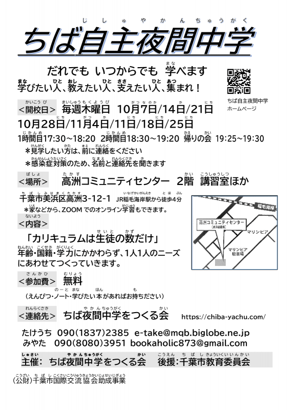 千葉市(ちばし)美浜区(みはまく)にある自主夜間中学(じしゅやかんちゅうがく) / Chiba Voluntary Night School