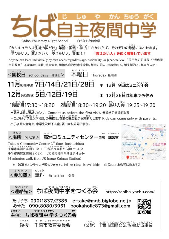 2024年10月25日 / 最終更新日 : 2024年10月25日 スタッフO ニュースレター(にゅーすれたー) 夜の学び舎(よるのまなびや) 第4号(だいよんごう) 夜の学び舎(よるのまなびや) 第4号(だいよんごう)(PDF)ダウンロード