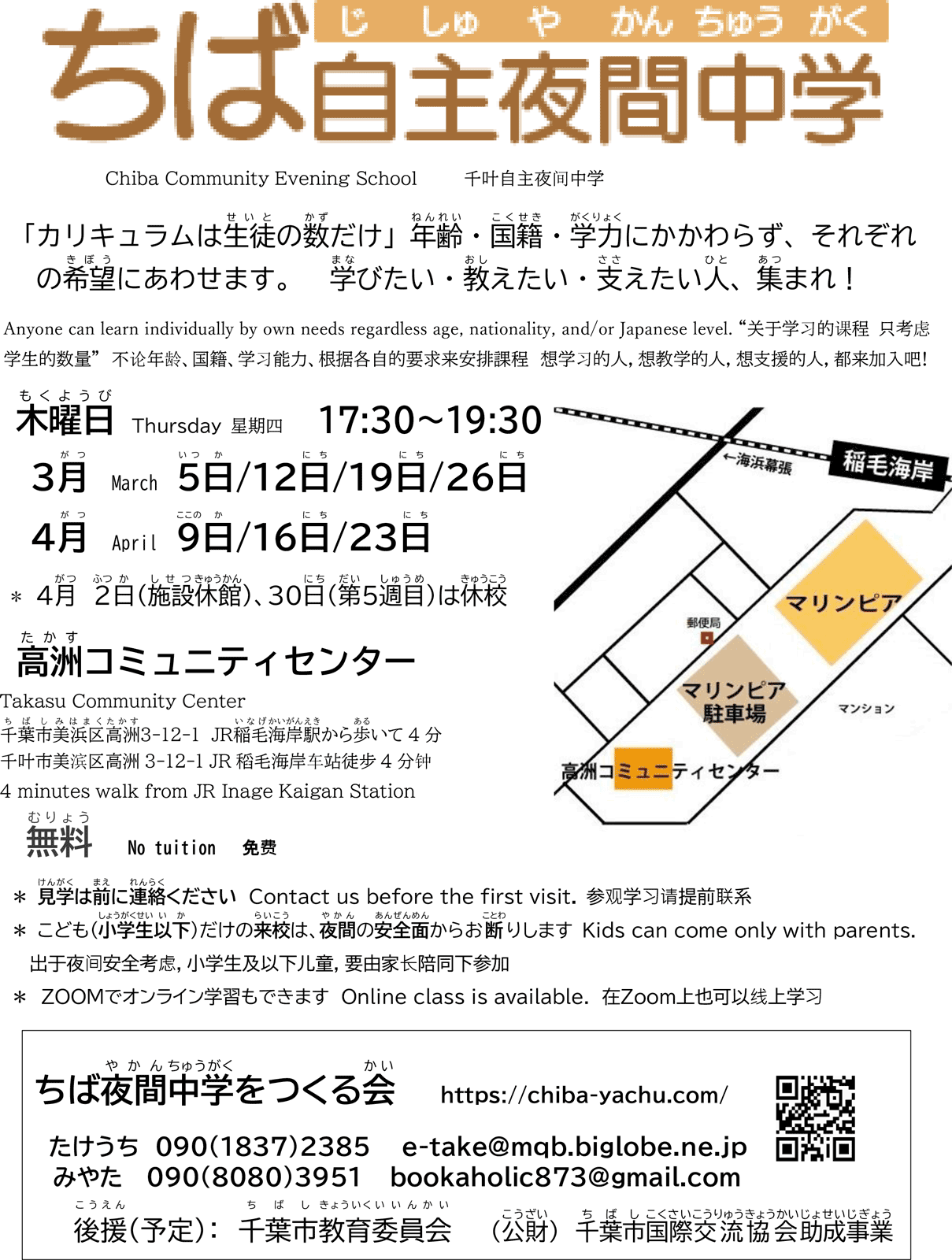 千葉市(ちばし)美浜区(みはまく)にある自主夜間中学(じしゅやかんちゅうがく) / Chiba Voluntary Night School